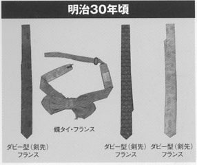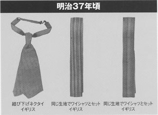 明治17年帽子商の小山梅吉氏の手により生産された蝶ネクタイが国産第一号として世に出てから、たくさんのネクタイが日本の紳士のVゾーンを飾ってきました。ここでは日本のネクタイがどのような歴史を歩んできたかを簡単にご紹介します。